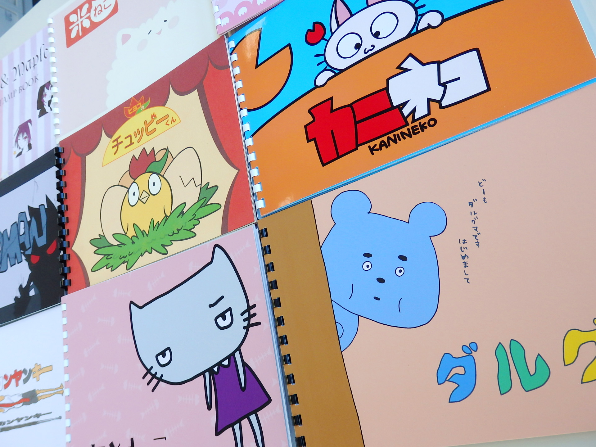 次にキャラクターのメインビジュアルが決定したら「お願い」「悩む」「疑問」など「喜怒哀楽」をテーマにキャラクターに表情とセリフつけるキャラクターデザインを行います。今回の授業では出来上がったオリジナルスタンプキャラクターをリング綴製本で1冊の「キャラクターブック」にして完成です。