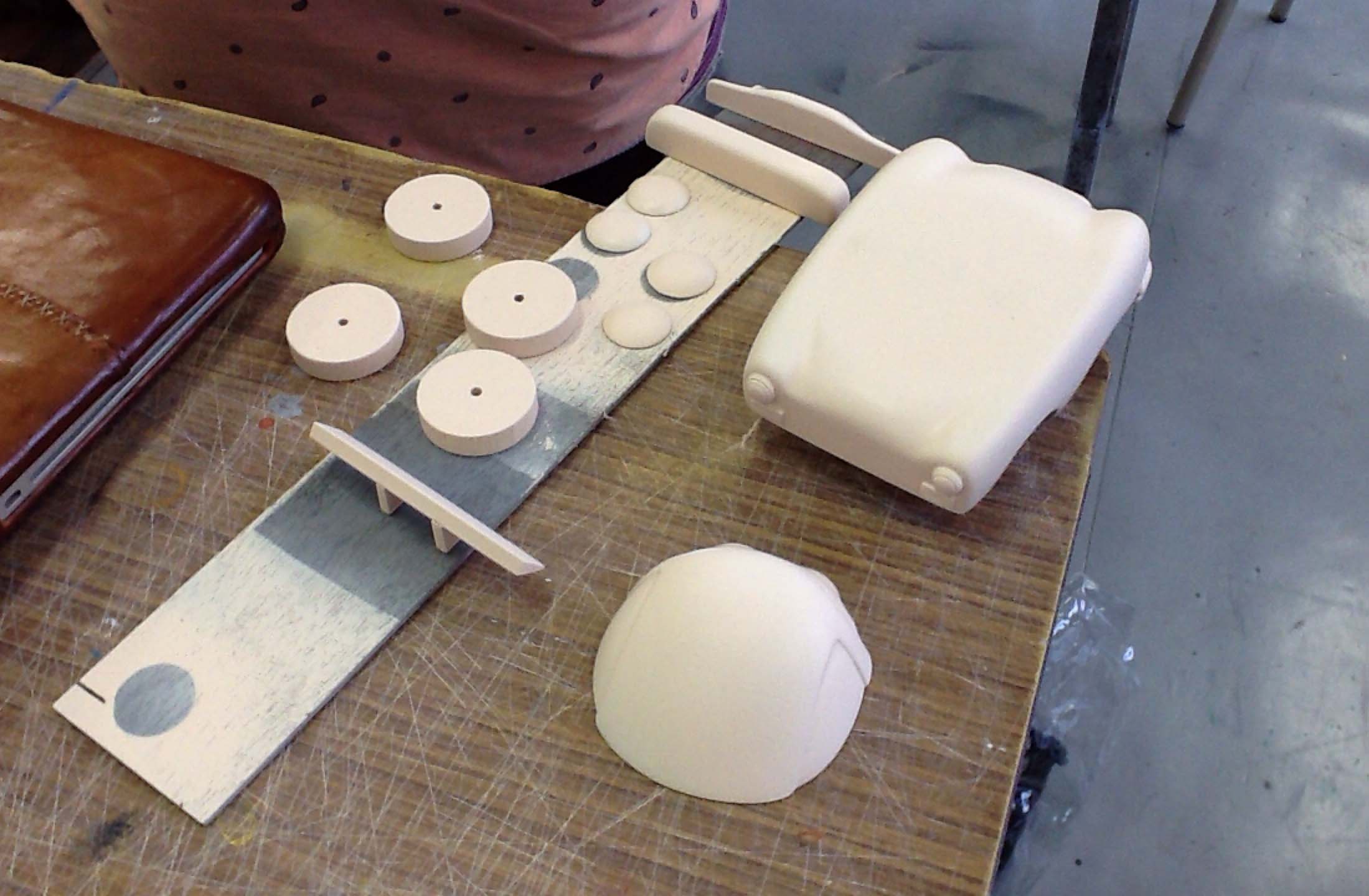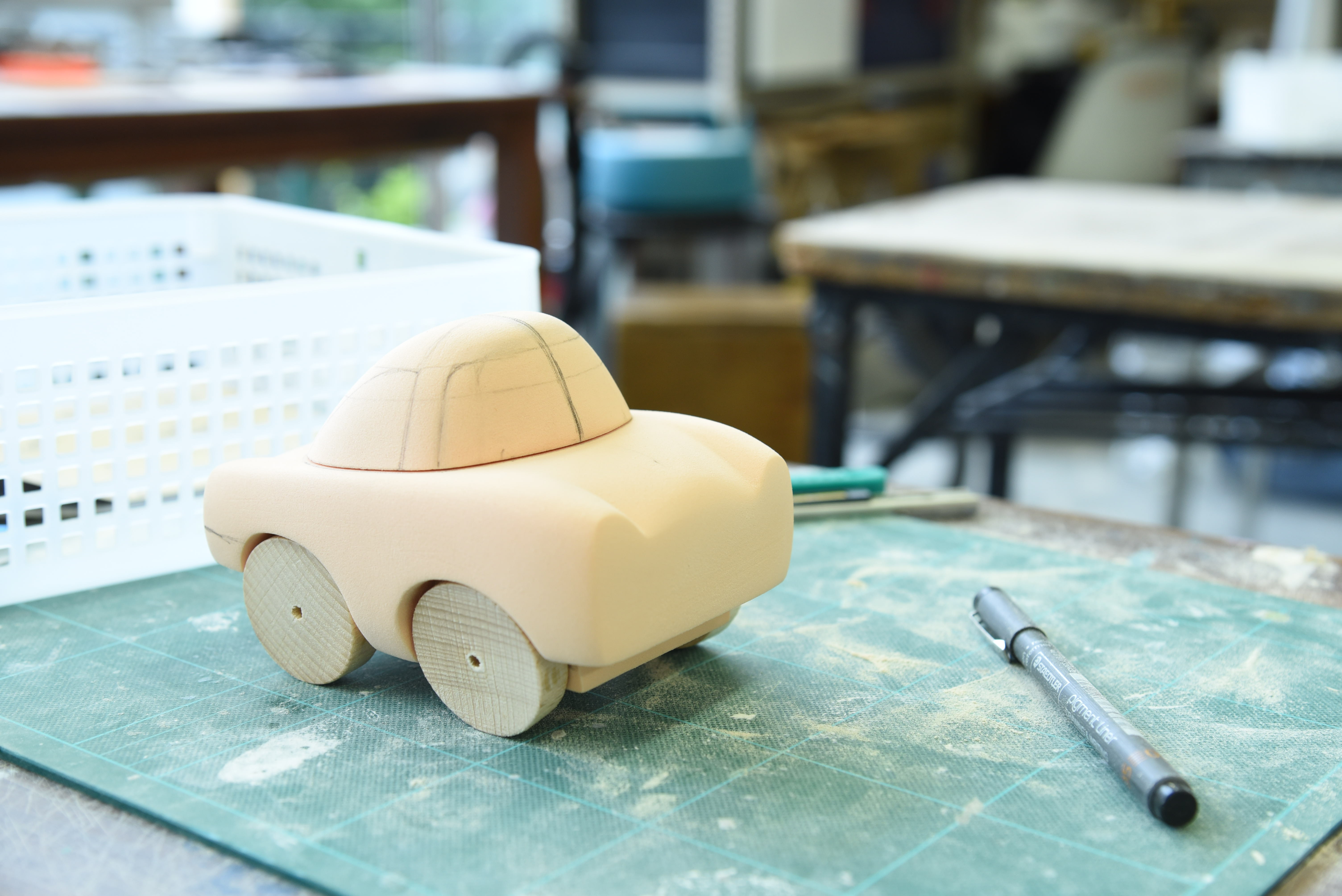 ケミカルウッドをメイン素材にして、車をデフォルメしてキャラクター化させます。