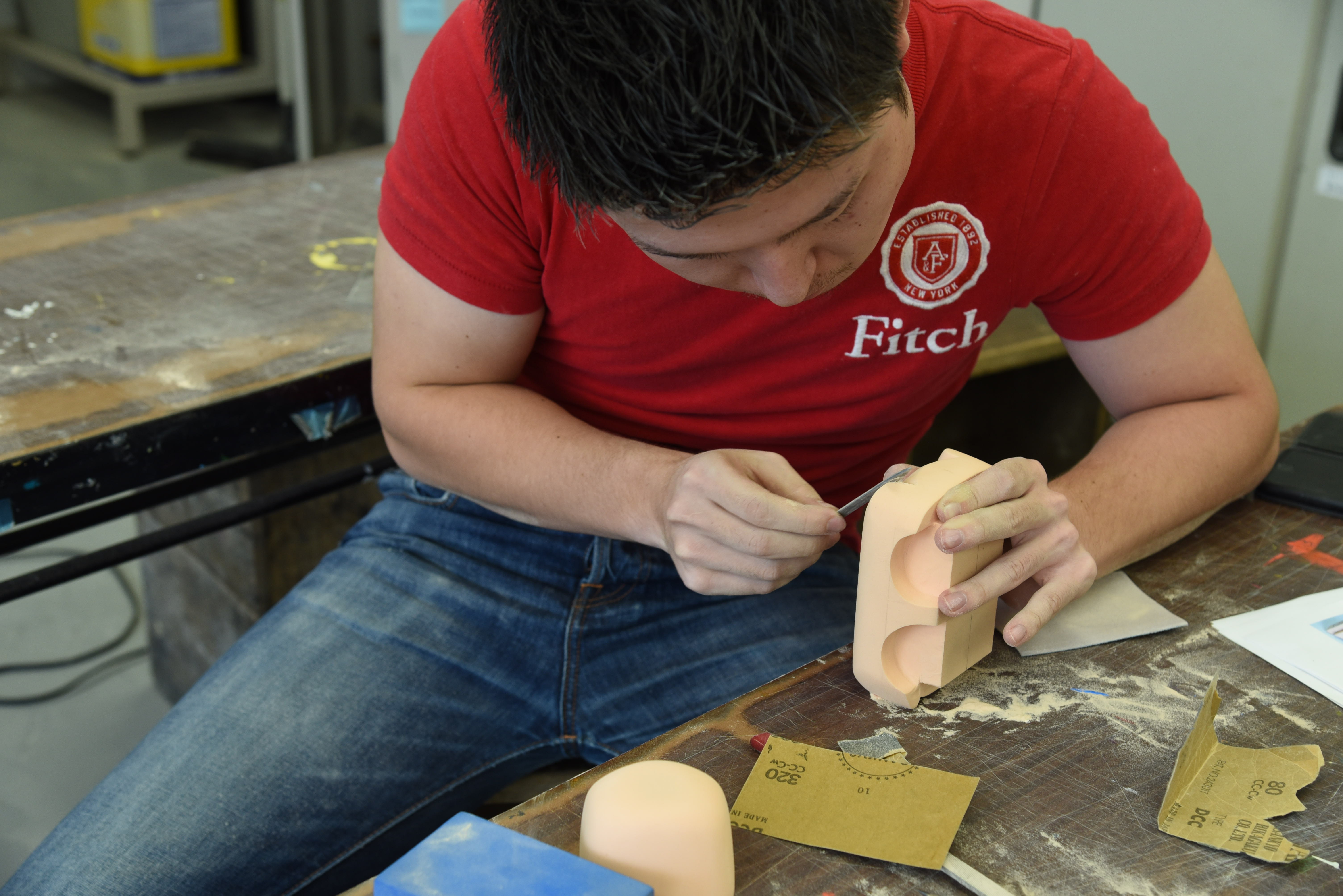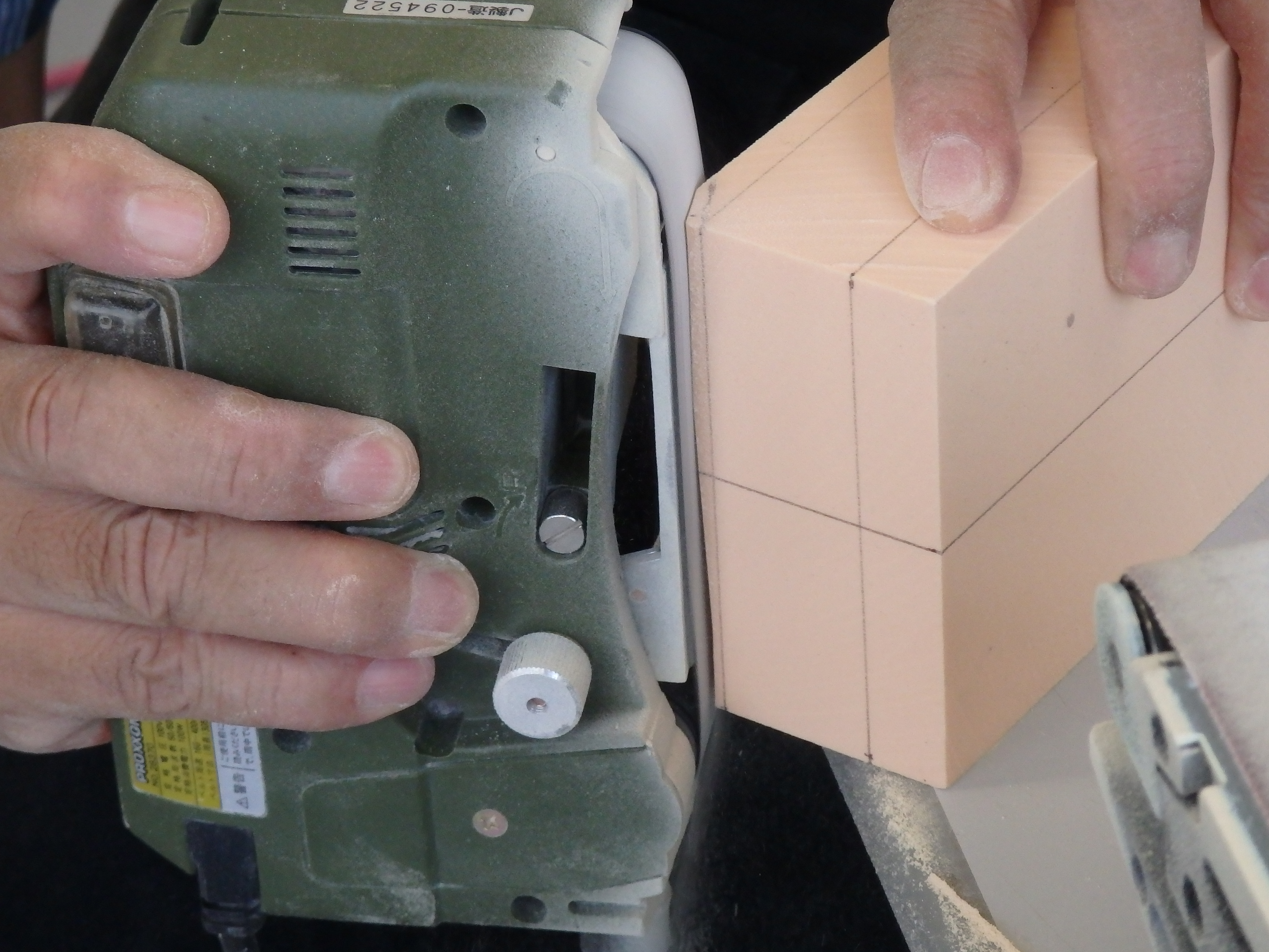 削り出しの為の線を引き、ひたすら削っていきます。シンメトリー(左右対称)に成形していくのは結構難しいのです。