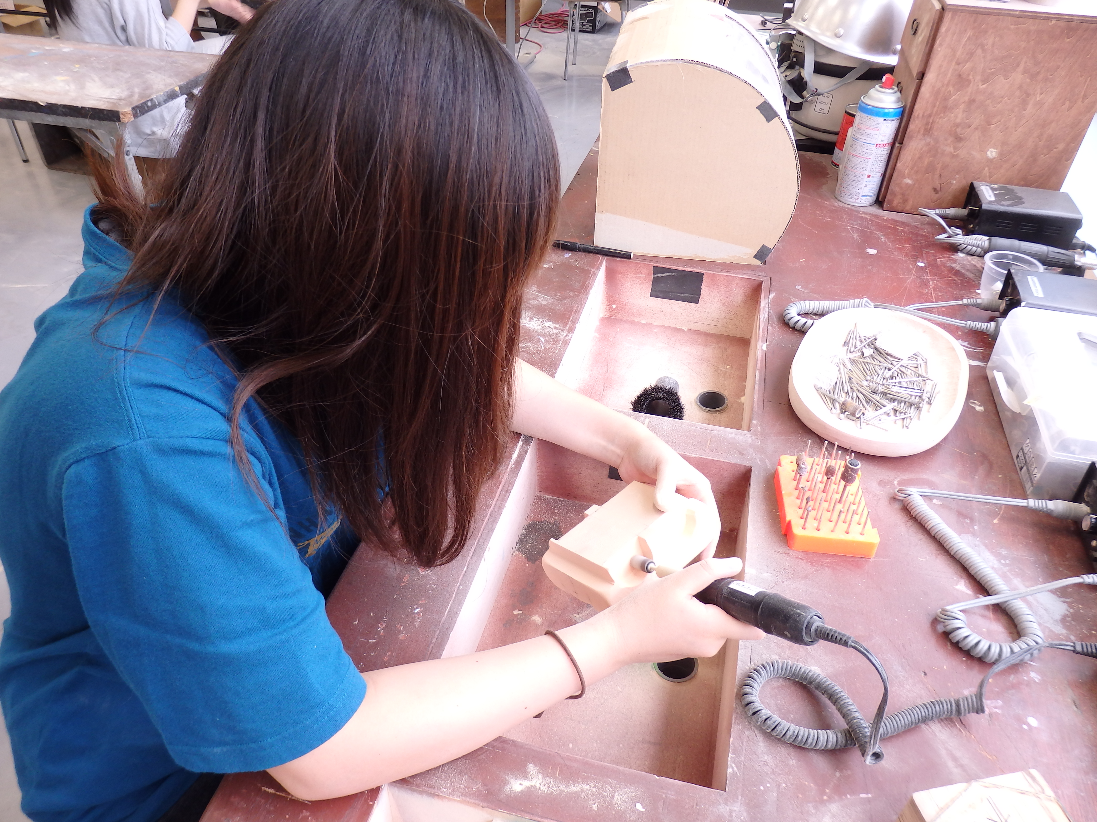 サンダーやルーターを使いながら作業を進めます。