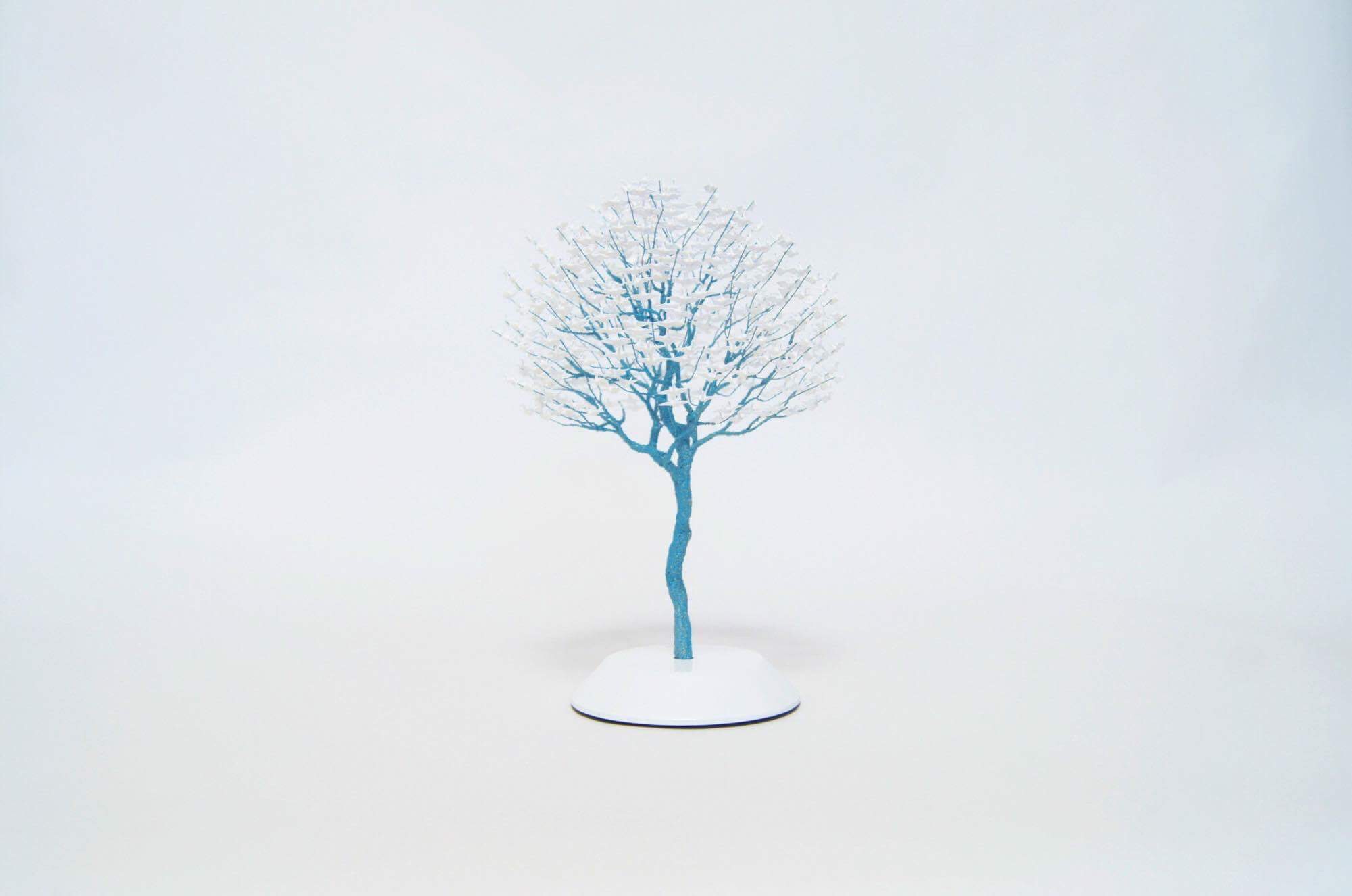 卒業制作から数ヶ月の間折り鶴から遠ざかっていましたが、TVで陸前高田市の1本松を見た時に「樹を作ってみよう」と思いたち、卓上サイズの鶴の樹を作り、陸前高田市役所へ直接持って行きました。