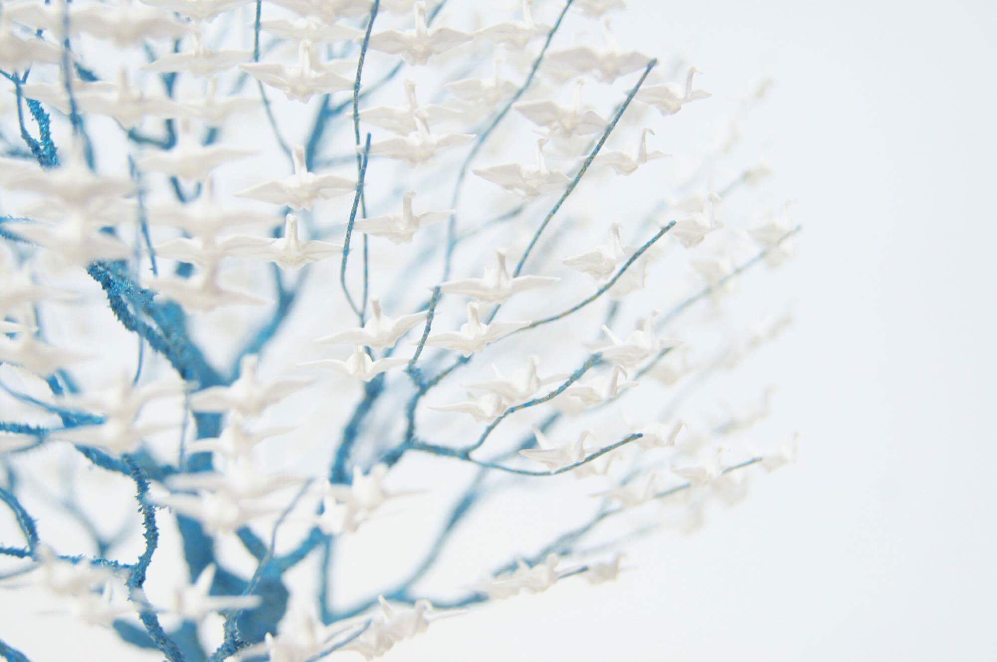 搬入まで延々と小さな鶴を折って樹につける作業を繰り返し、当時は時折余震もありましたし、期限も迫り焦っていた為、揺れて鶴が全部落ちるという悪夢を何度もみました。