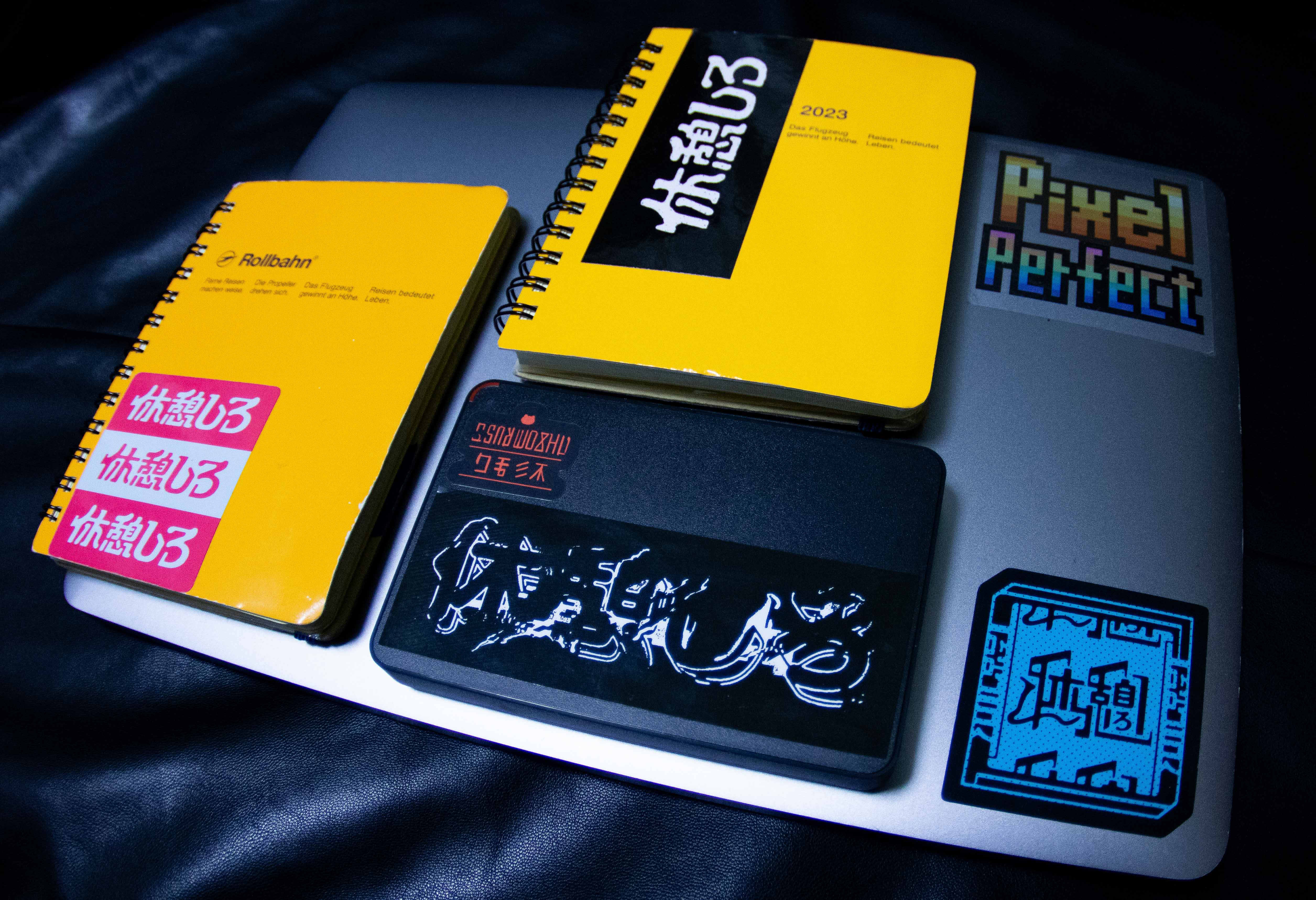 パソコンや手帳などにも好きなステッカーを貼り付けています。