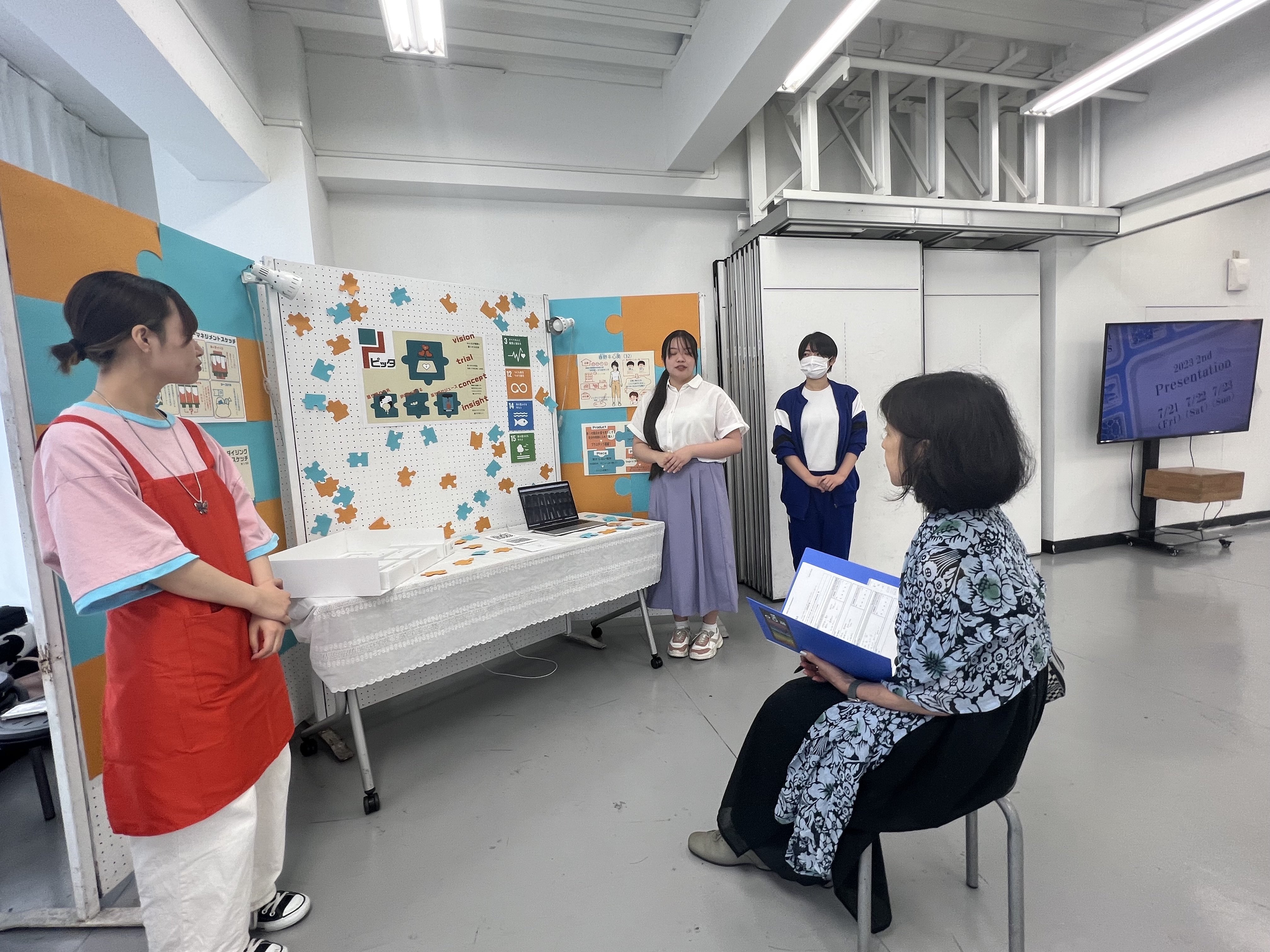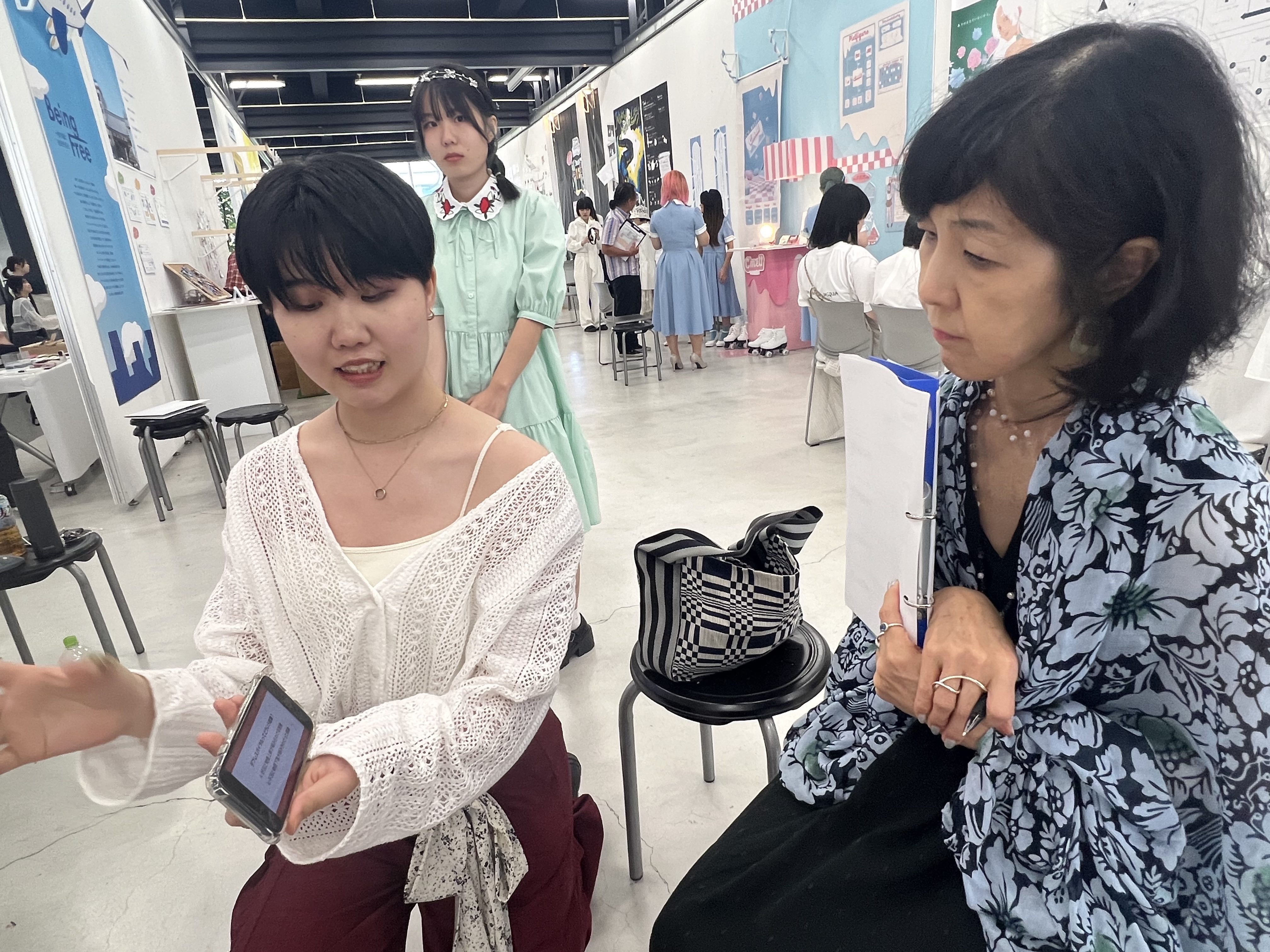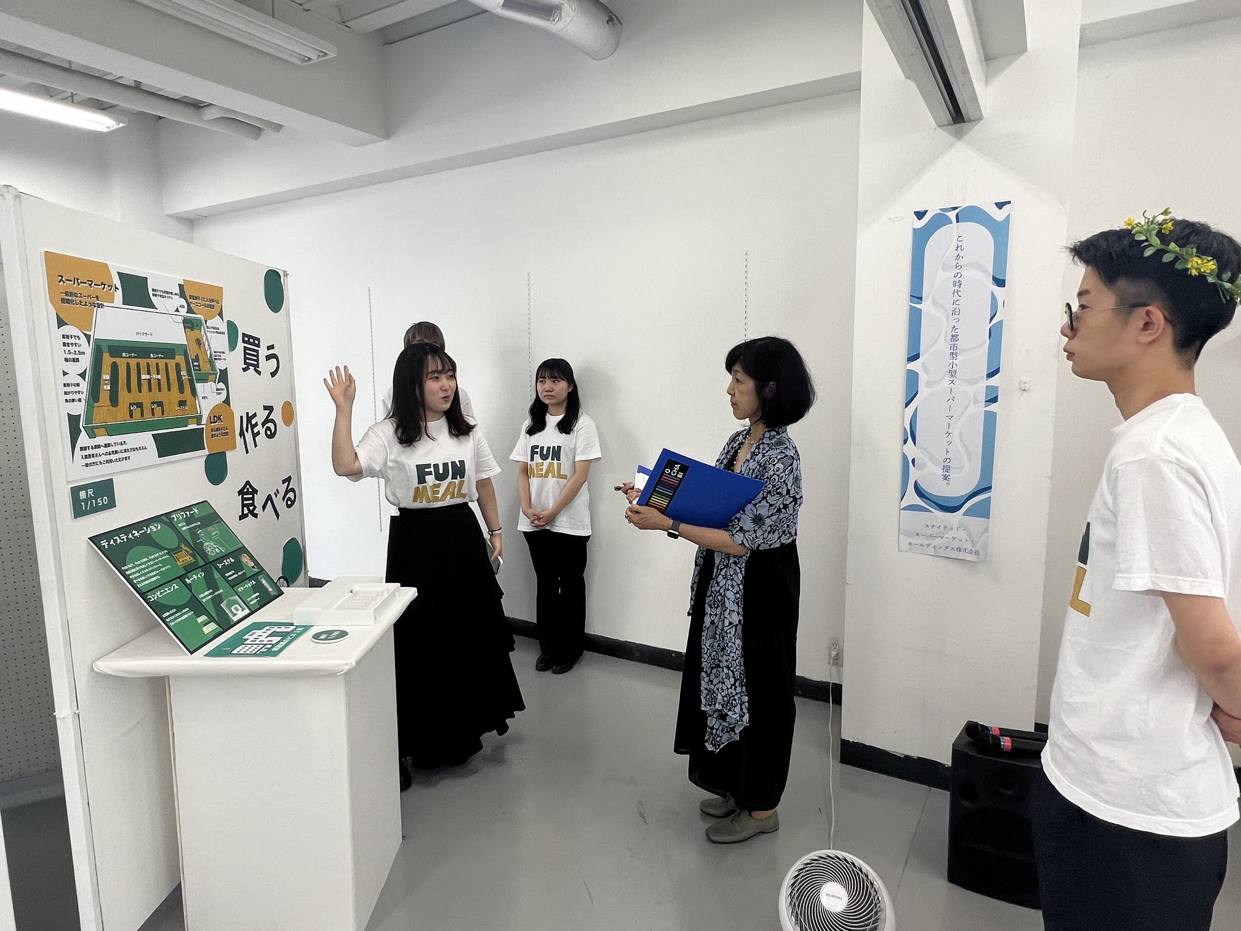 学生のプレゼンテーションを聞き、展示の全体を見てどんな企画なのかパッと理解し、次々と審査をし、一通り企画を審査した後、気になる企画に戻り、もう一度概要を見て鋭い質問などをされていました。