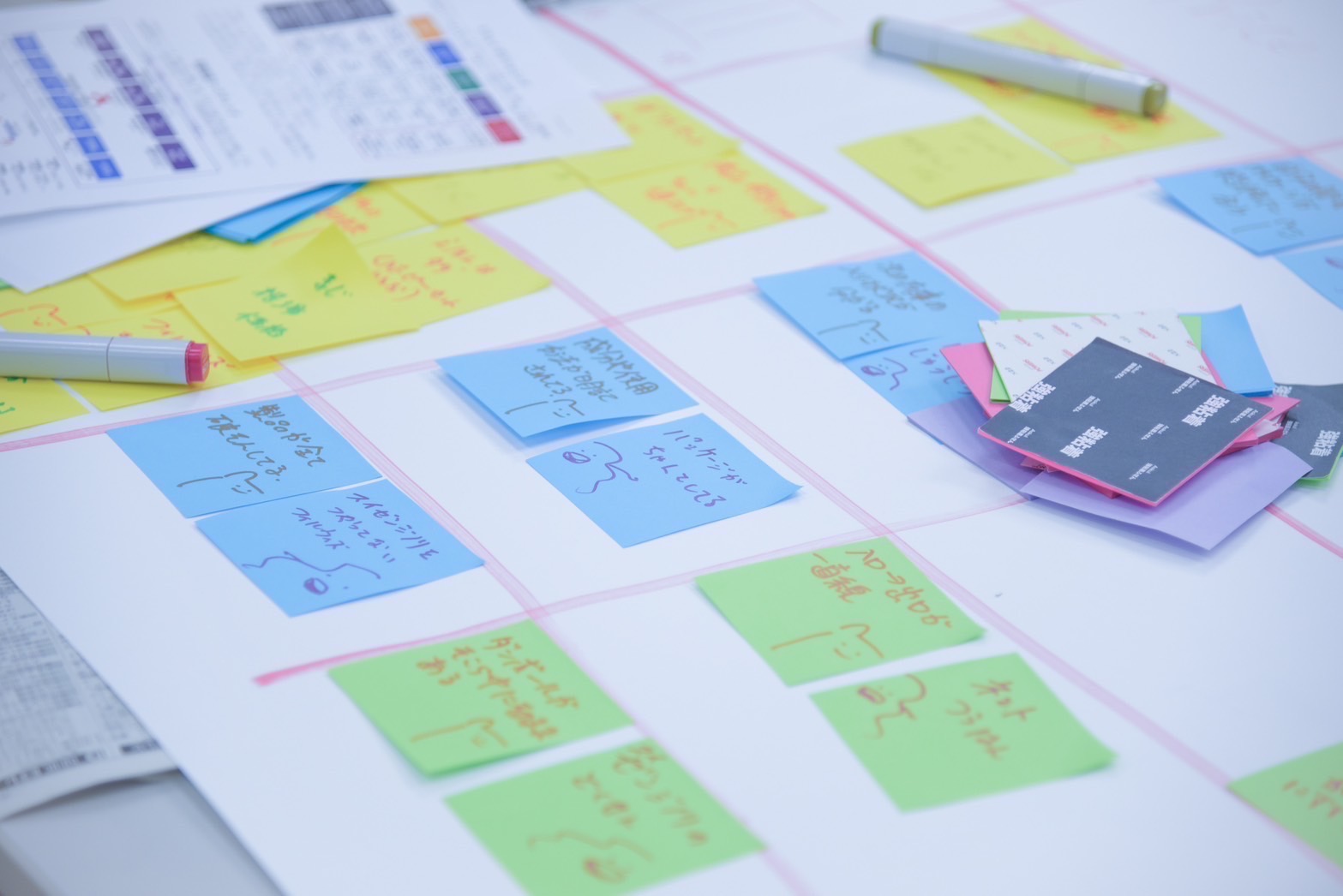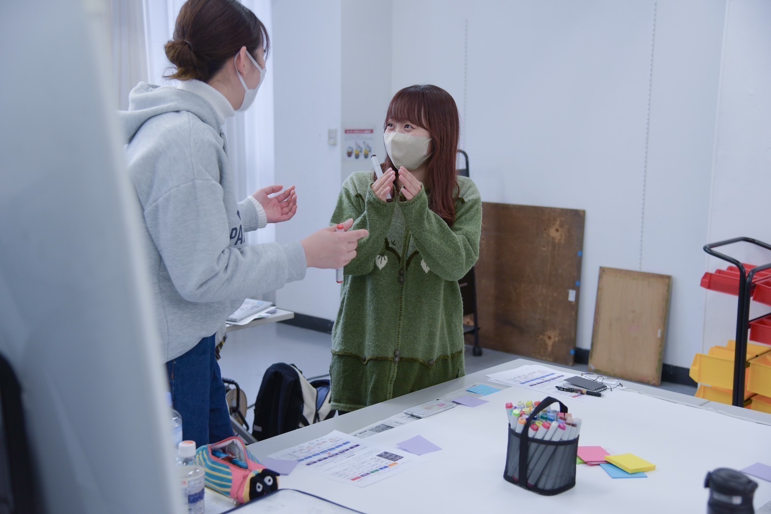 そのためにはまず、仲間と協力して意見を出し合ったり、模造紙に付箋にアイディアを出し合ったり意見を交わし合います。