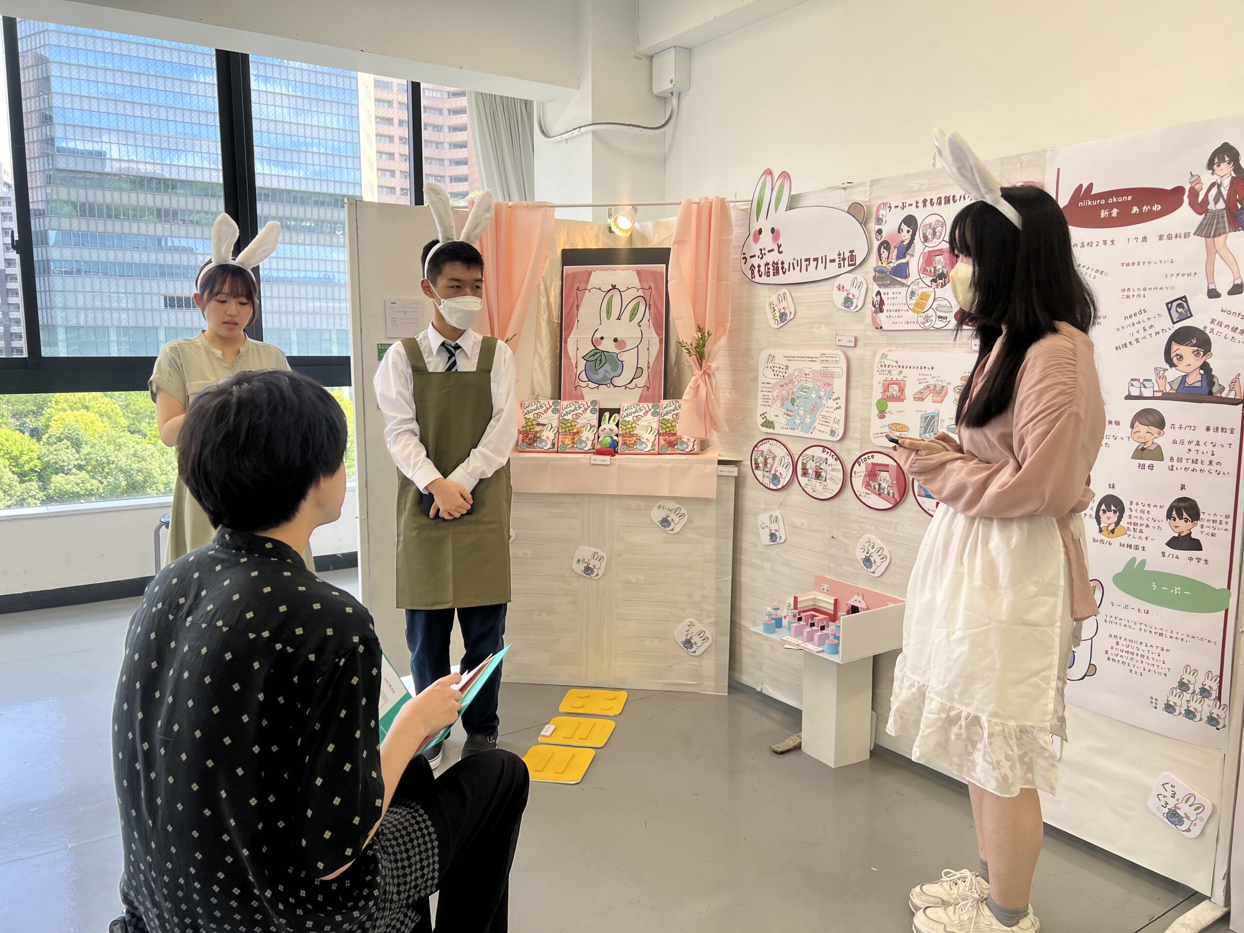ビジュアルのインパクトもプレゼンテーション力も学生とは思えないくらいクオリティ高いですね!とお褒めの言葉をいただきました。