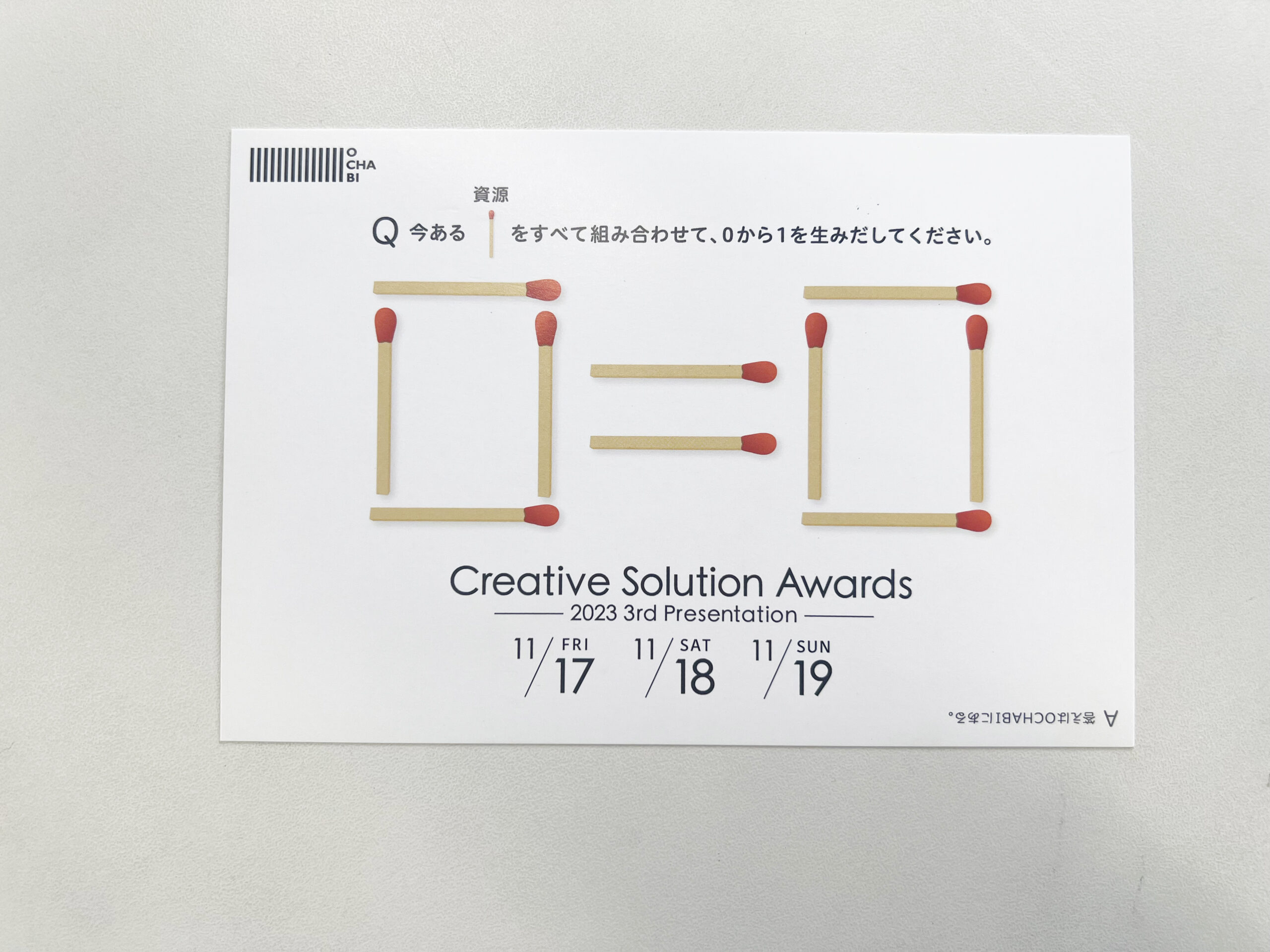 今回は、Creative Solution Awards -2023 3rd Presentation- のメインビジュアルは学生が授業の一環として制作・提案したものの中からデザイン・アート科2年生の上杉心愛さんが選ばれました!