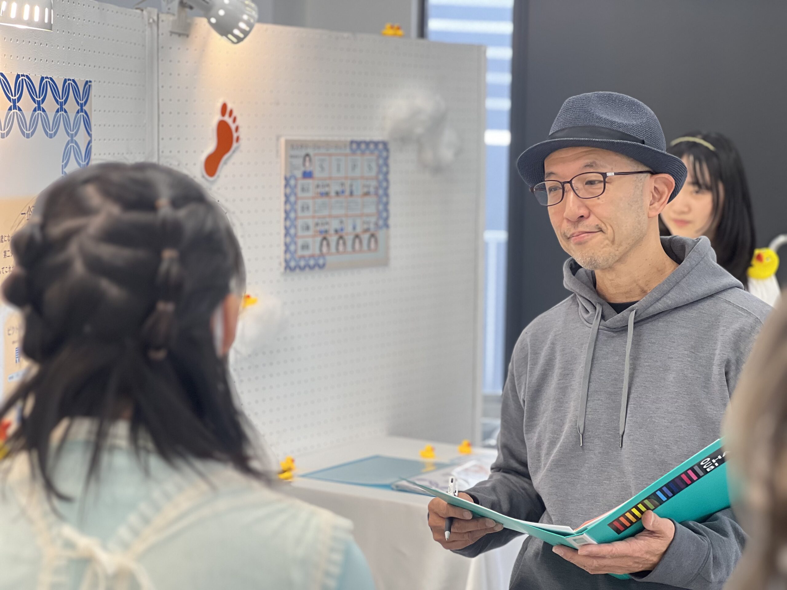 阿部さんは4階の1年生のブースからスタート。
