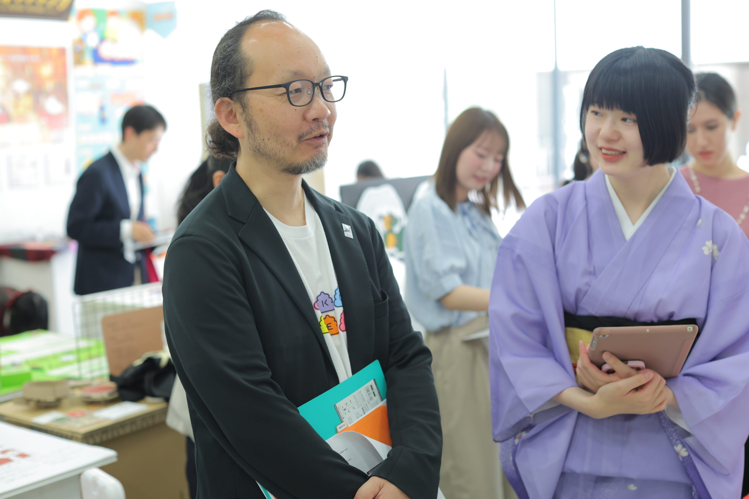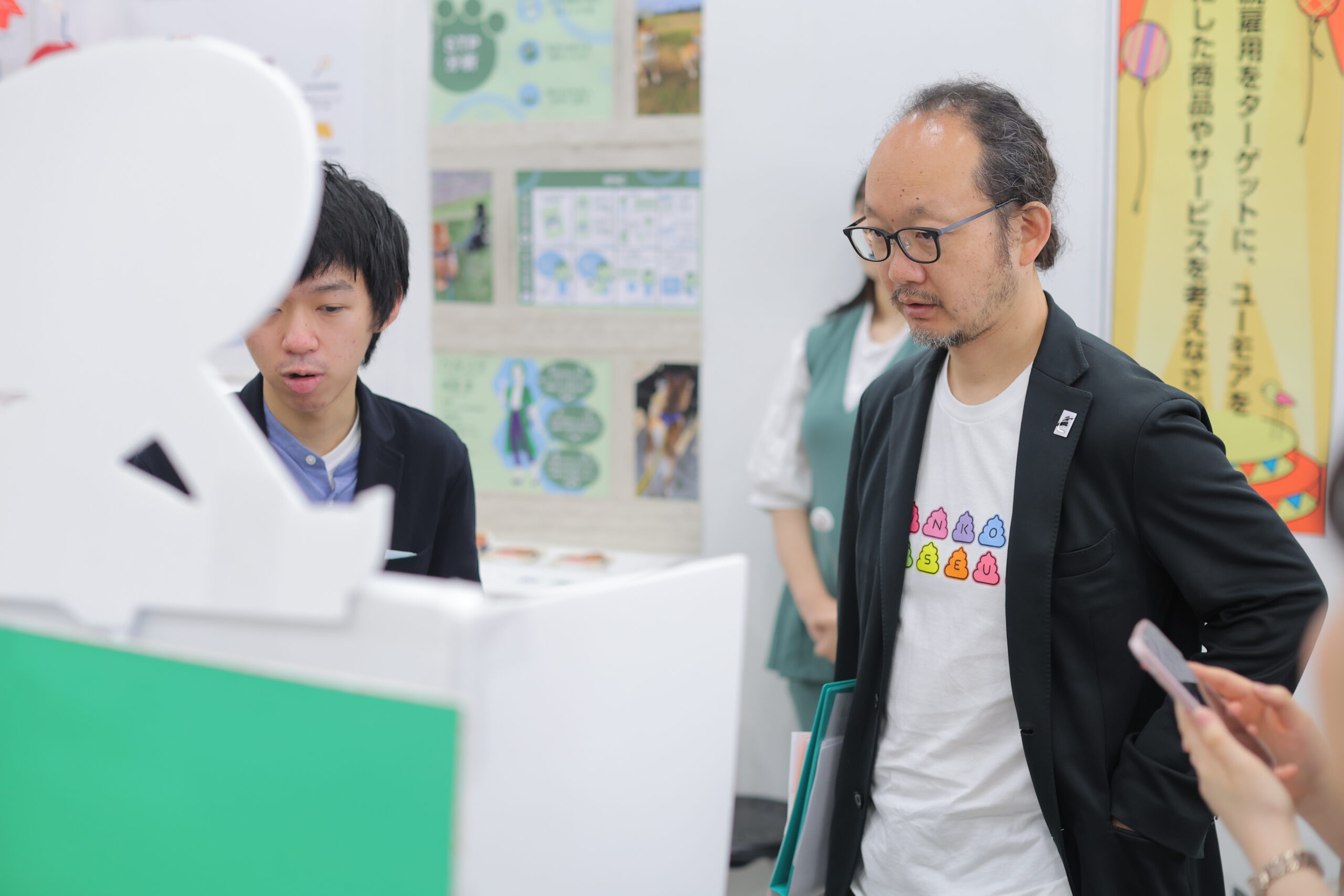 100小間近い出展をすべて見て回り、学生の発表に耳を傾けてくださった阿部さん。