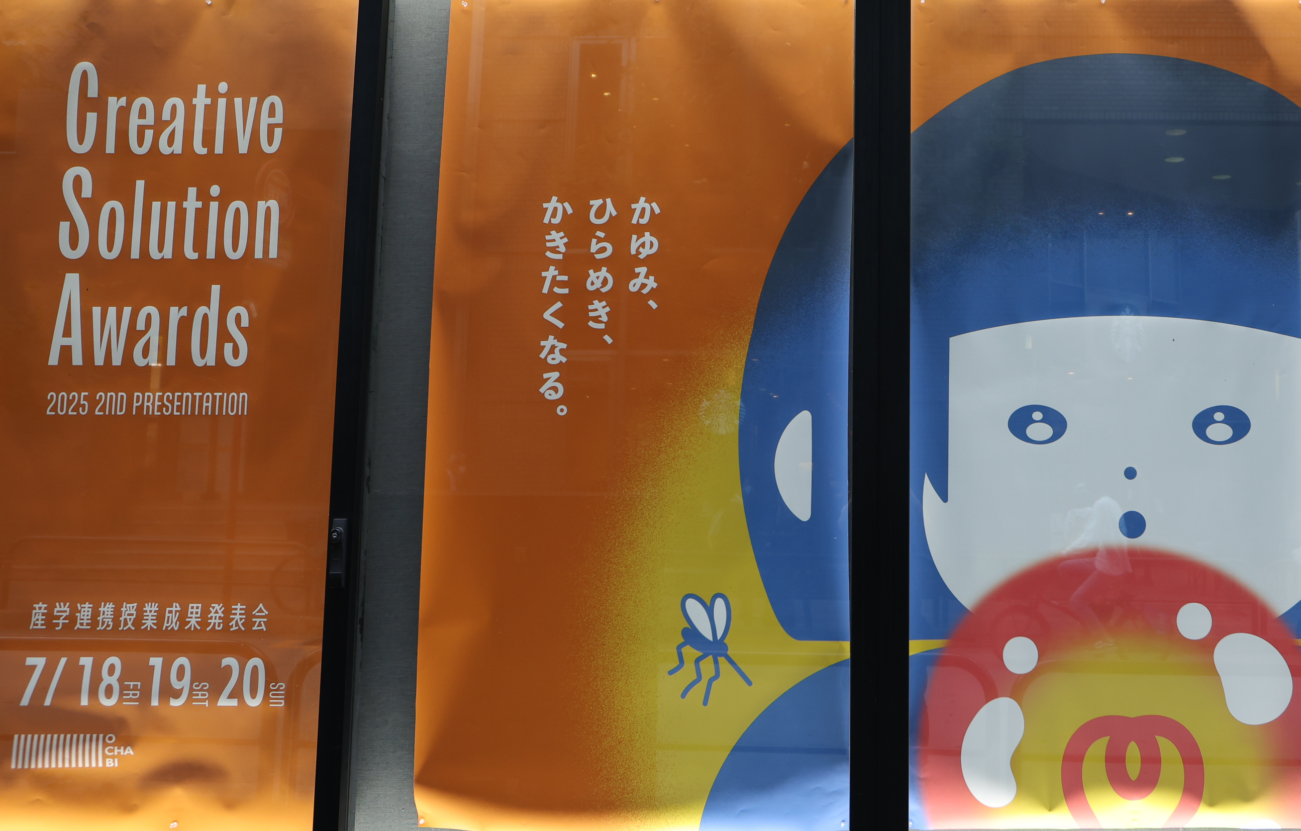 夏に行われる展示会だったため、“夏といえば蚊、蚊といえば痒い”という連想ゲームをしている中で思いついたアイデアです。キャッチコピーの「かゆみ、ひらめき、かきたくなる。」は“蚊に刺された場所を搔きたくなる”のと“閃きを書き出したくなる”というダブルミーニングになっています。