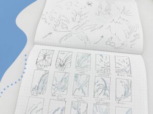 上にはモチーフの書き出し、下にはサムネイルスケッチが描かれています。