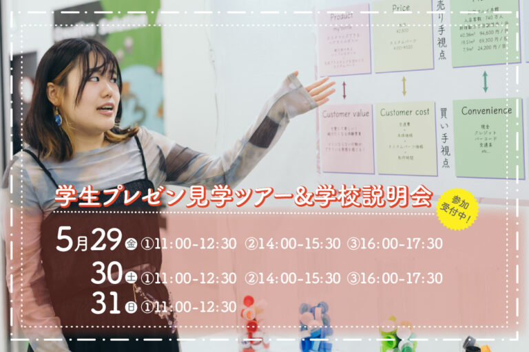 御茶の水美術専門学校の平日授業、マーケティングや書籍化されたデザインアート思考を応用する産学連携授業を見学できます。