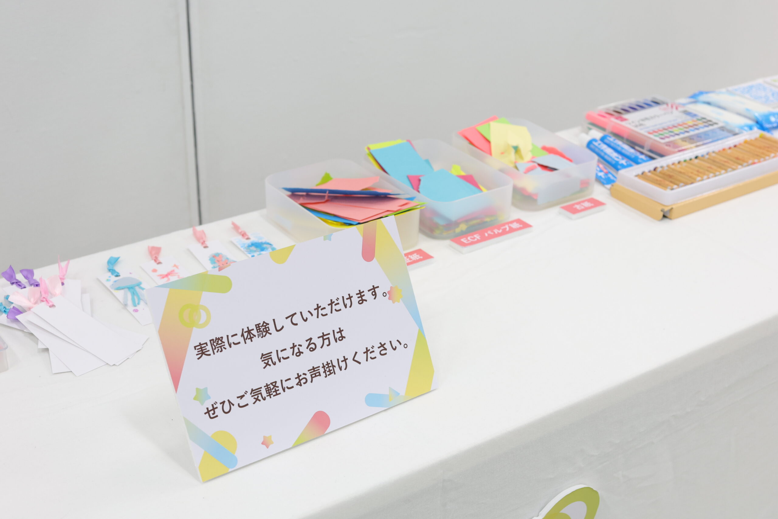 “⽵尾の⼯場で⽣まれた紙の端材を活⽤し、「⾒る・触れる・作る」を通して紙の魅⼒を体感できる。